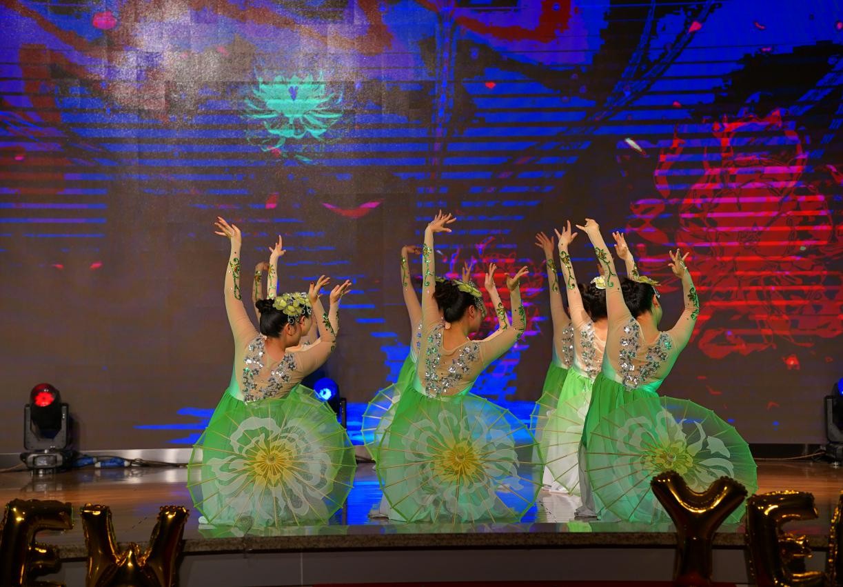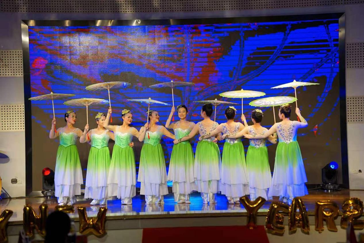 校工会教职工舞蹈协会在我院文体委员、德语系吴娟老师的带领下,经过大半年的辛苦训练和打磨,把一只优雅而极具水墨中华特色的女子群舞《茉莉花开》带到了舞台上,引起了现场观众的热烈掌声和广泛称赞。