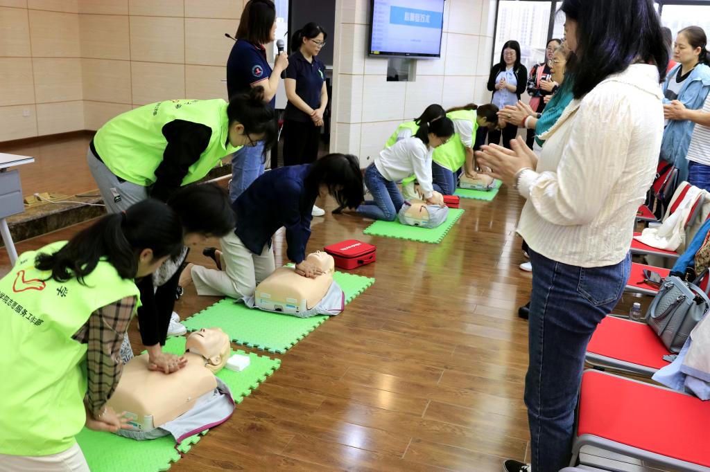 10月10日上午9:00,校工会文体部梁丽娜老师对此次培训的相关事宜做了简要介绍。接着,方艳老师讲解了心肺复苏的步骤、自动体外除颤器的使用。然后,龙清艳老师用生动的语言、真实的案例,对气道异物梗阻急救方法进行了详细讲授。讲解过程中,在两位老师和重庆医科大学第二临床学院应急急救先锋志愿者学生的指导帮助下,参训教职工相互合作、反复练习,直至掌握心肺复苏的动作要领和步骤。