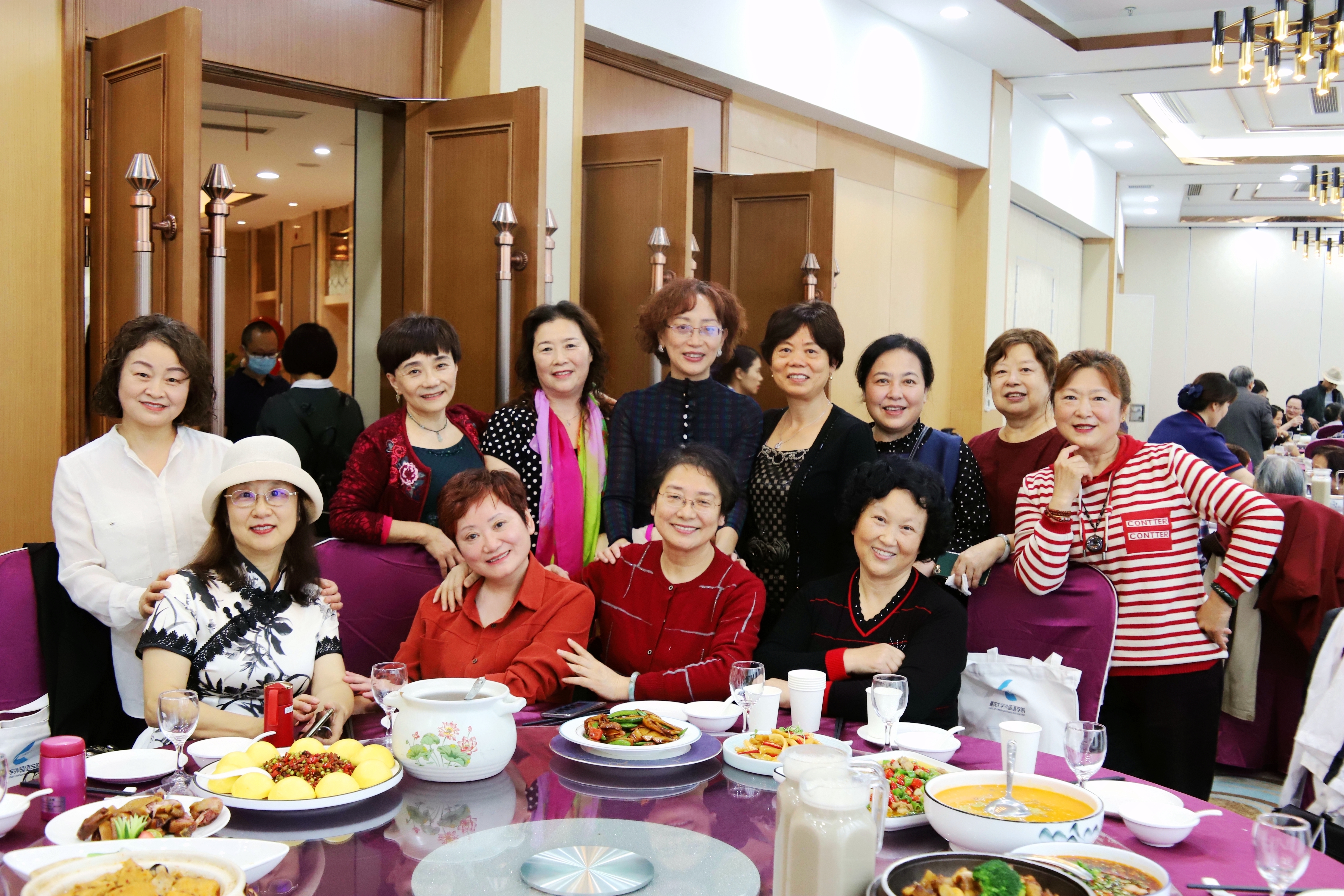 11点30分,老同志们陆续来到聚会现场,兴高采烈,互致问候。然后签到领取节日活动慰问品。12点,欧玲书记代表学院向离退休教职工致以亲切的节日问候,感谢他们为学院做出的贡献和支持,并祝愿他们生活幸福、健康长寿。