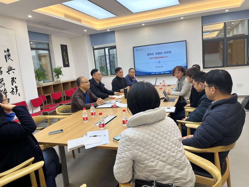 在学科建设、中外联合培养、师资国际化等方面的院级规划,特别强调了我院大学外语教育中心和各个专业系在丰富学校国际化氛围、提升师生国际交流能力方面的措施。同时,也针对我校国际化人才培养中面临的挑战和困难提出了外语学院的建议。随后,与会人员就中外合作办学项目申请、来华留学生招生、学生长短期出境交流、外籍师资引进等事宜进行了深入交流。