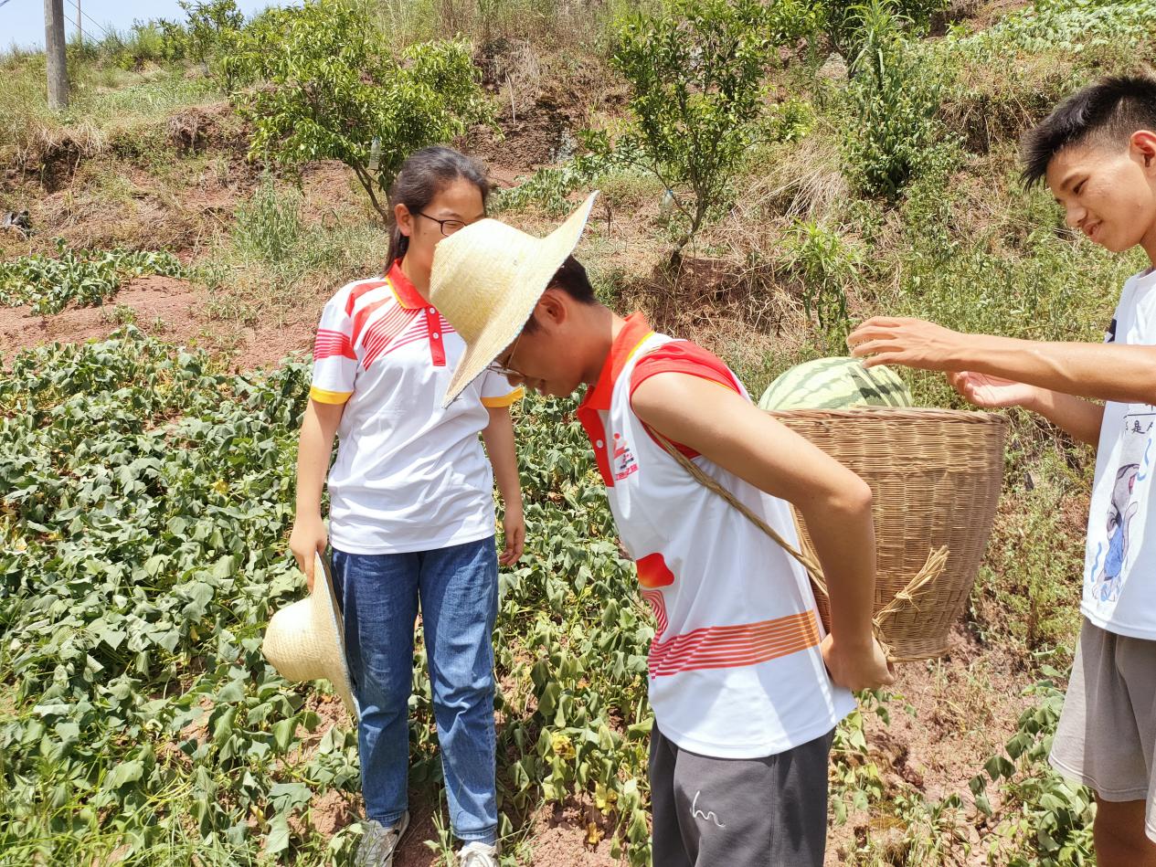 实践团成员在帮助农户采摘西瓜