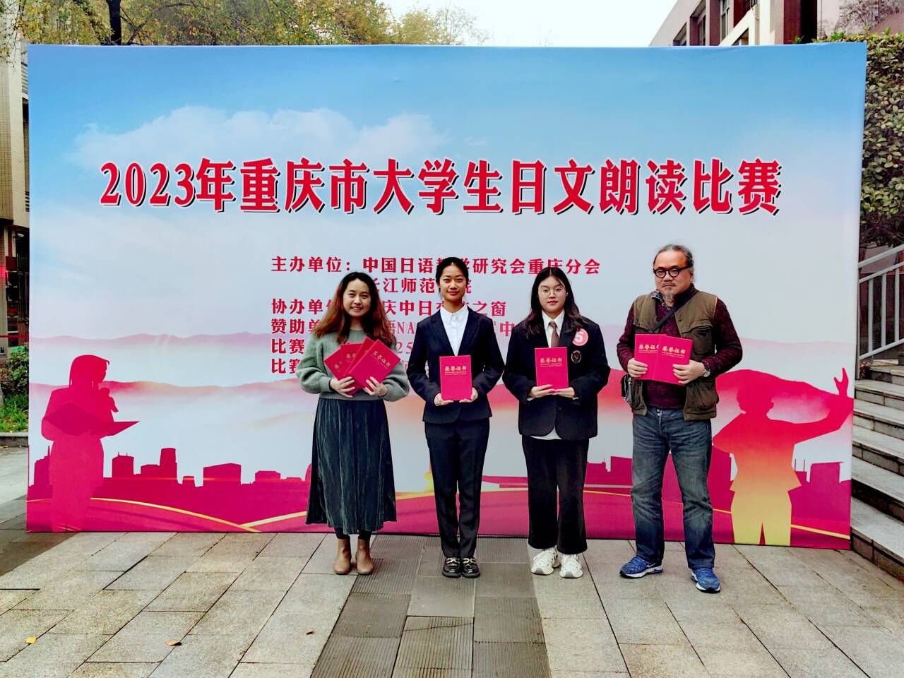 2023年11月25日,2023年重庆市大学生日文朗读比赛决赛在长江师范学院举行。本次比赛由中国日语教学研究会重庆分会主办,长江师范学院承办。比赛分为21级专业组、22级专业组、非专业组三个组别,共有来自11所高校的30名选手参赛。我院三位选手参赛,日语系教师石运带队。