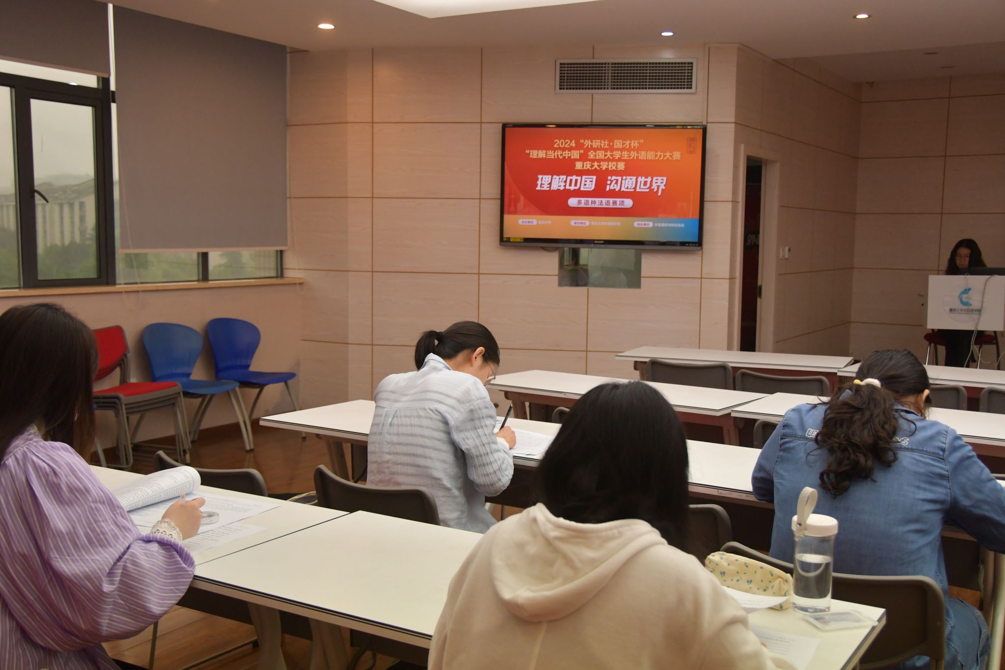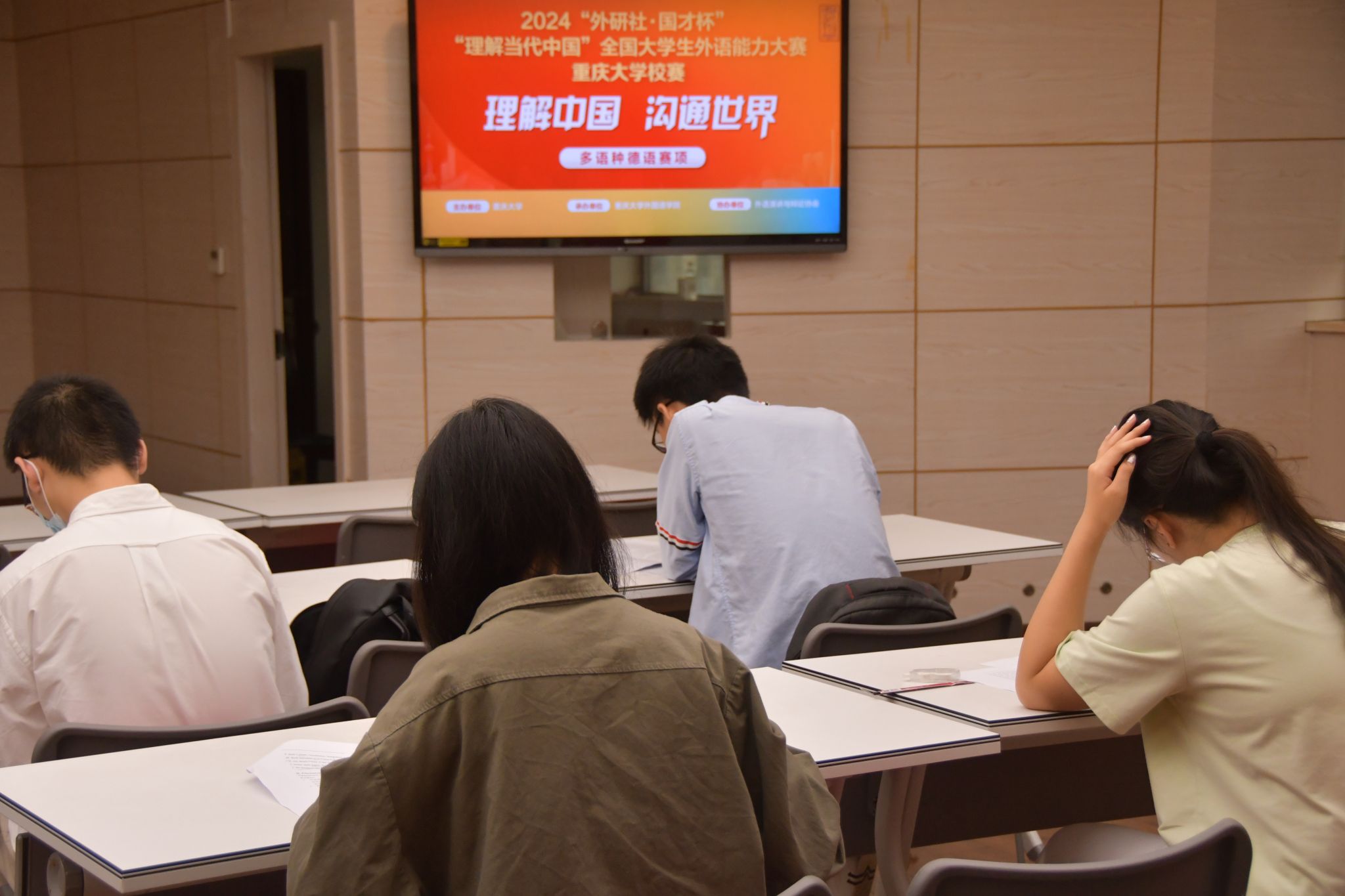 楼501会议室举行。日语赛项内容围绕中国特色社会主义理论、新时代青年的责任、生态文明建设、文明互鉴等主题;德语赛项赛题大部分内容来自《理解当代中国》德语系列教材中的课文和练习,小部分内容来自国内权威的外宣网站上的词条解释;法语赛项选取五四精神、生态文明建设、中国特色大国外交、社会主义民主政治、家乡特色等主题内容。多语种各赛项围绕中国在政治、外交、生态、文化等多领域的建设成果进行全方位考查,从读写译等角度综合检验选手的语言应用能力,旨在引导参赛者运用中国特色社会主义理论的立场方法观察阐释当代中国的发展成就的能力,深化对当代中国社会主义现代化建设的理解与认同,从跨文化视角阐释中国道路和中国方案的能力,用所学语言讲好中国故事。