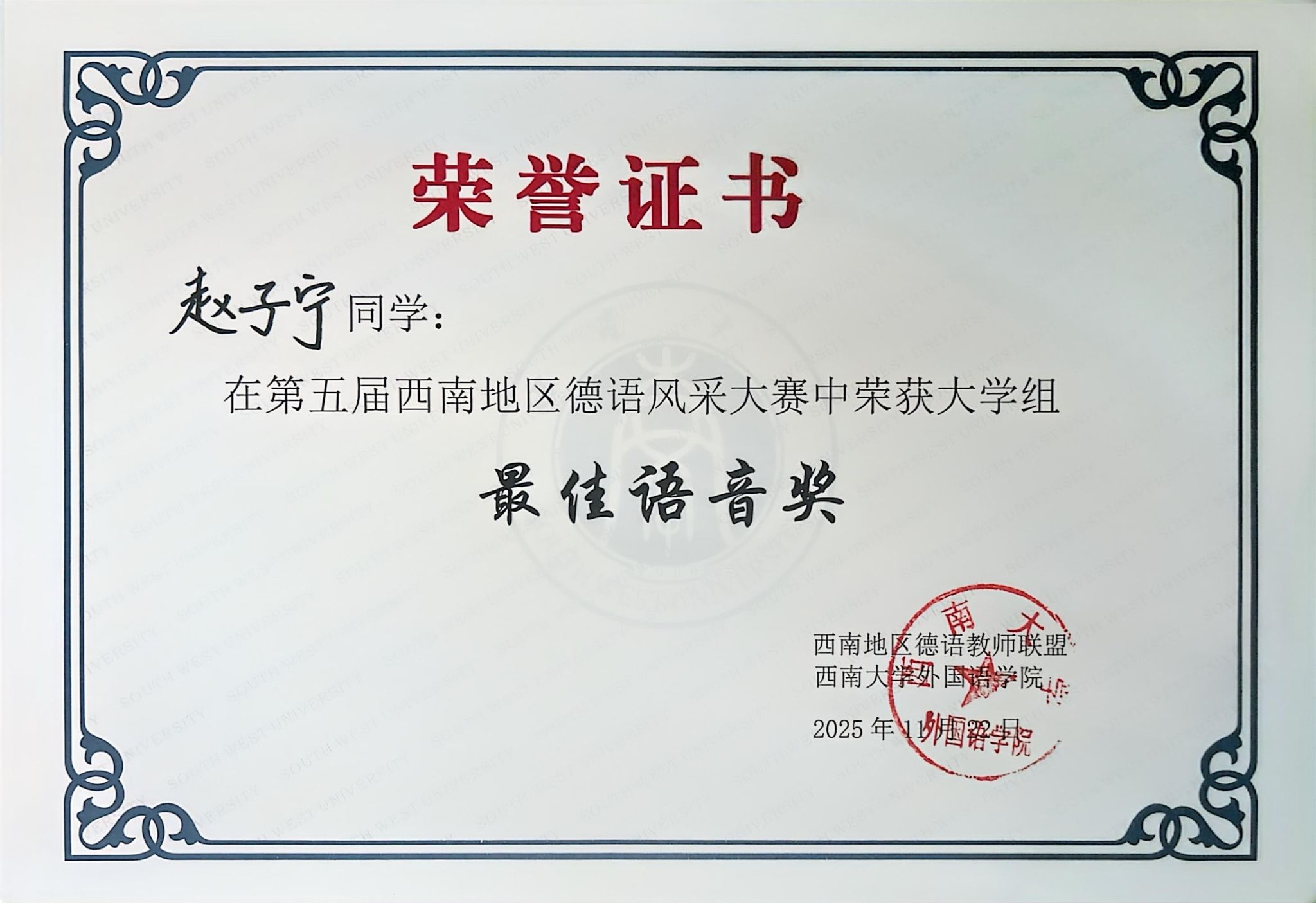 2025年11月22日,第五届西南地区德语风采大赛在西南大学举办。我校代表队由色情影片