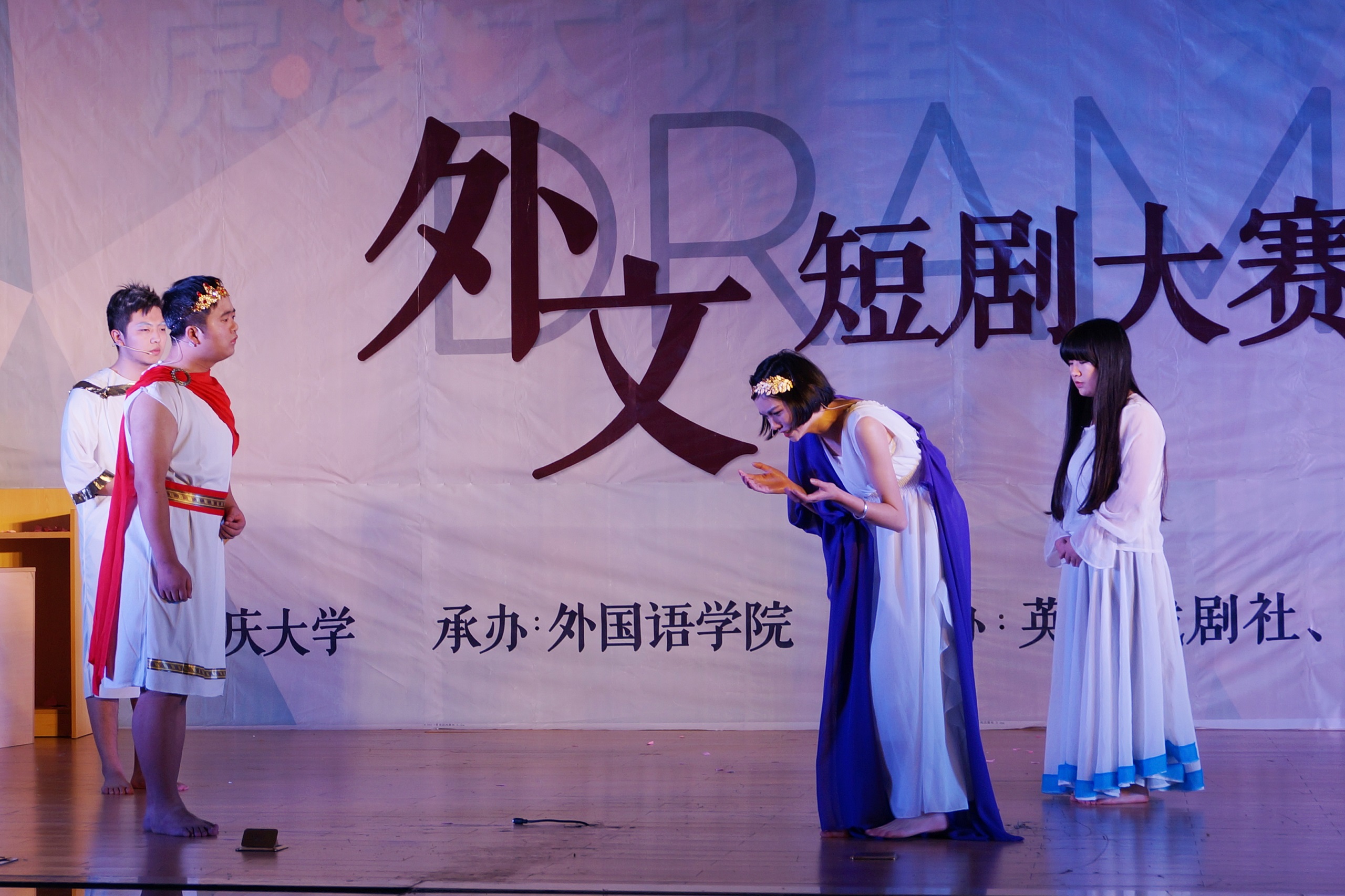第十五届外语文化节系列活动之外文短剧大赛决赛在虎溪校区图书馆报告厅拉开了帷幕。本次活动由色情影片