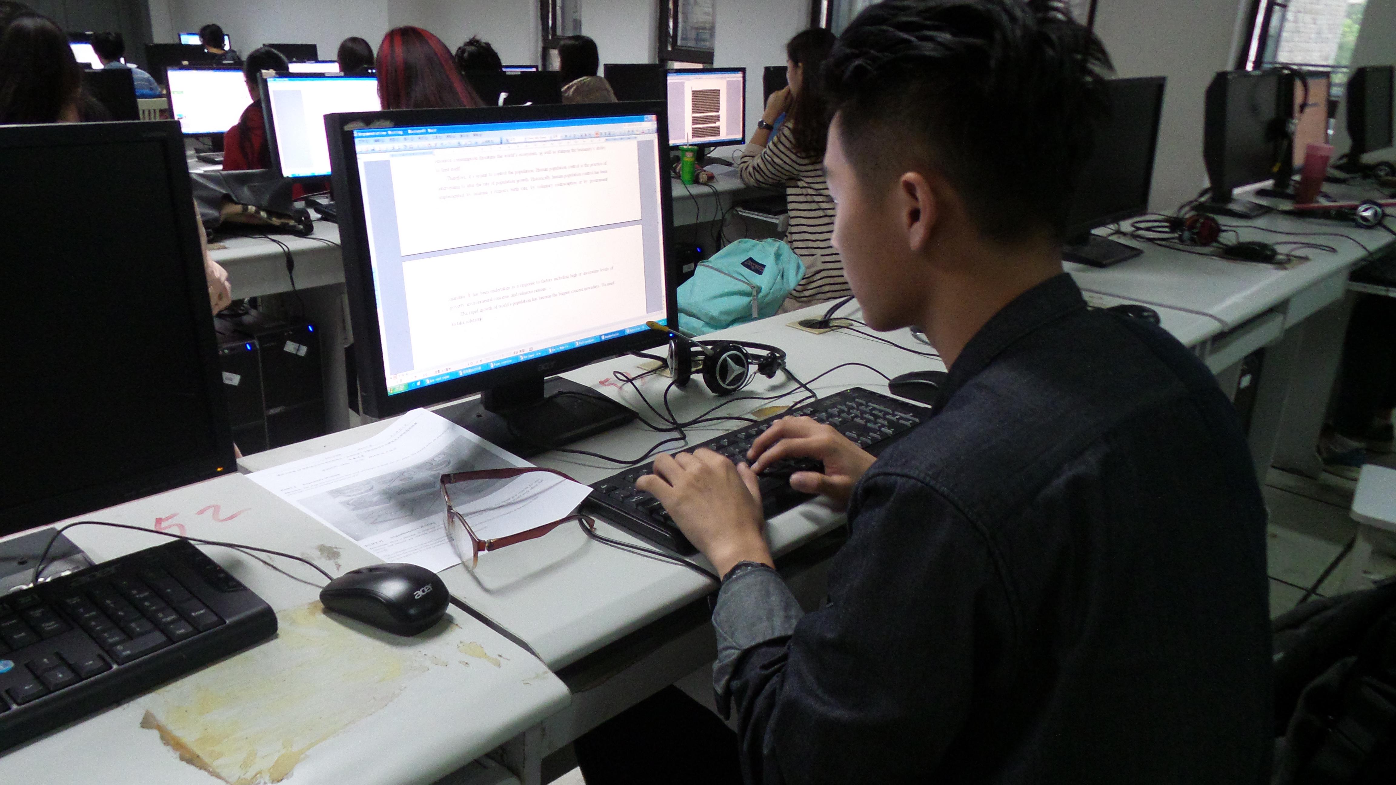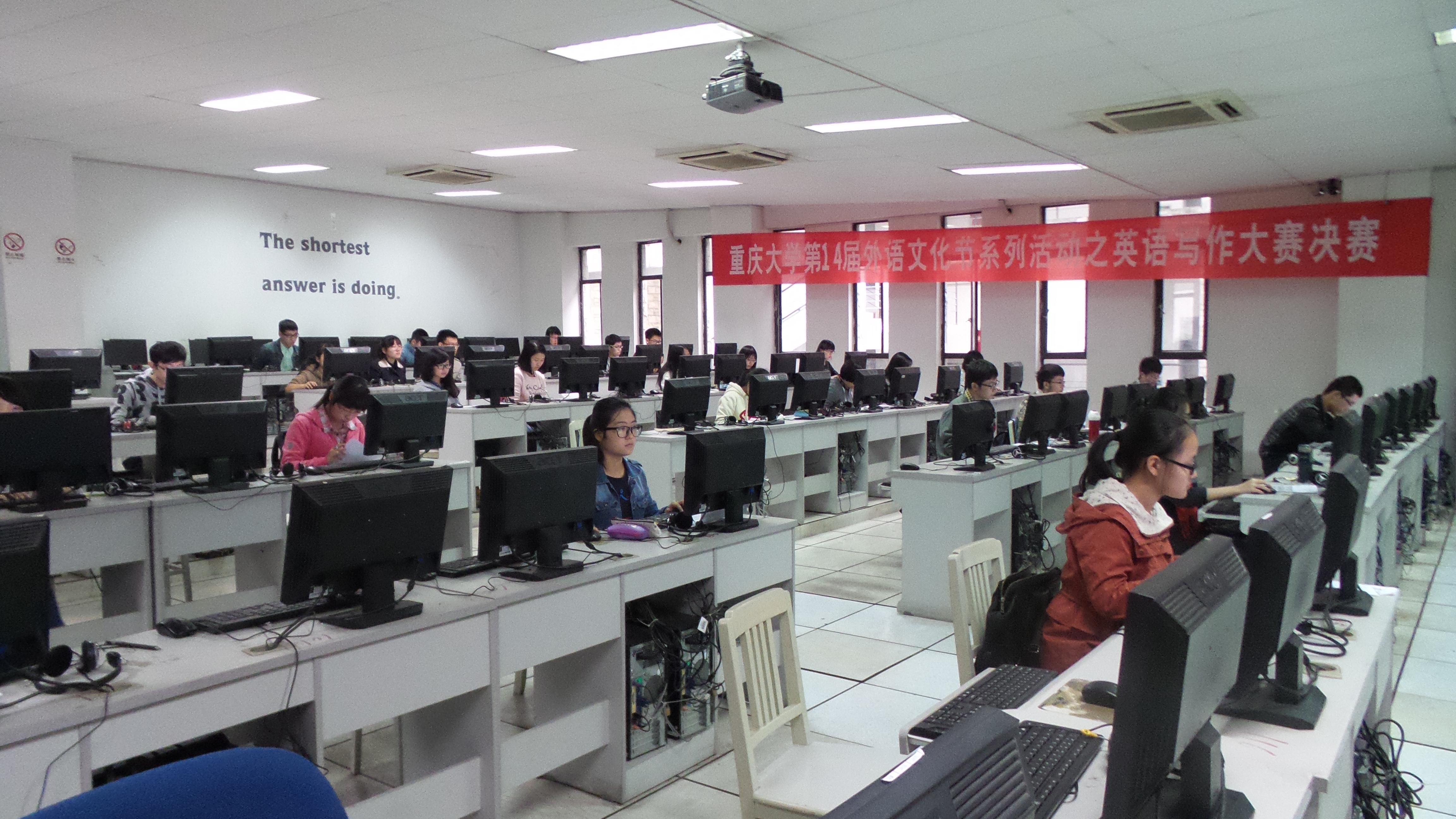 第14届外语文化节系列活动之“外研社杯”英语写作大赛决赛也于综合楼外语实验室拉开了帷幕。