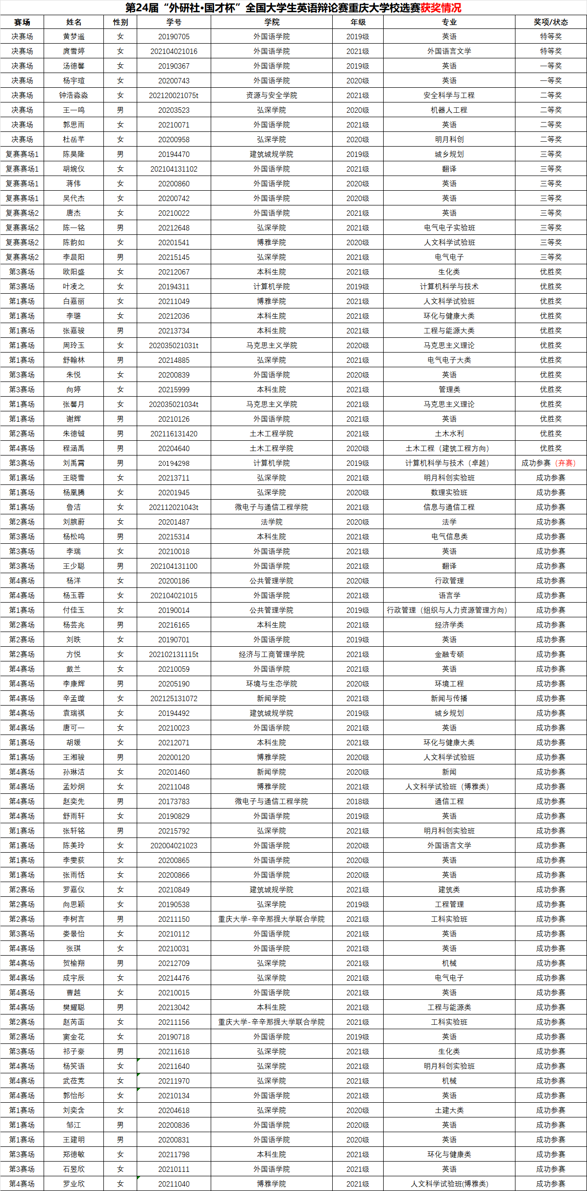 2022年3月27日,第24届“外研社•国才杯”全国大学生英语辩论赛色情影片 校园选拔赛在腾讯会议线上平台顺利举办。本次大赛共吸引全校25个学院66个专业的64支队伍参赛,最终评选出2名特等奖、2名一等奖、4名二等奖、8名三等奖、13名优胜奖。详细获奖情况如下: