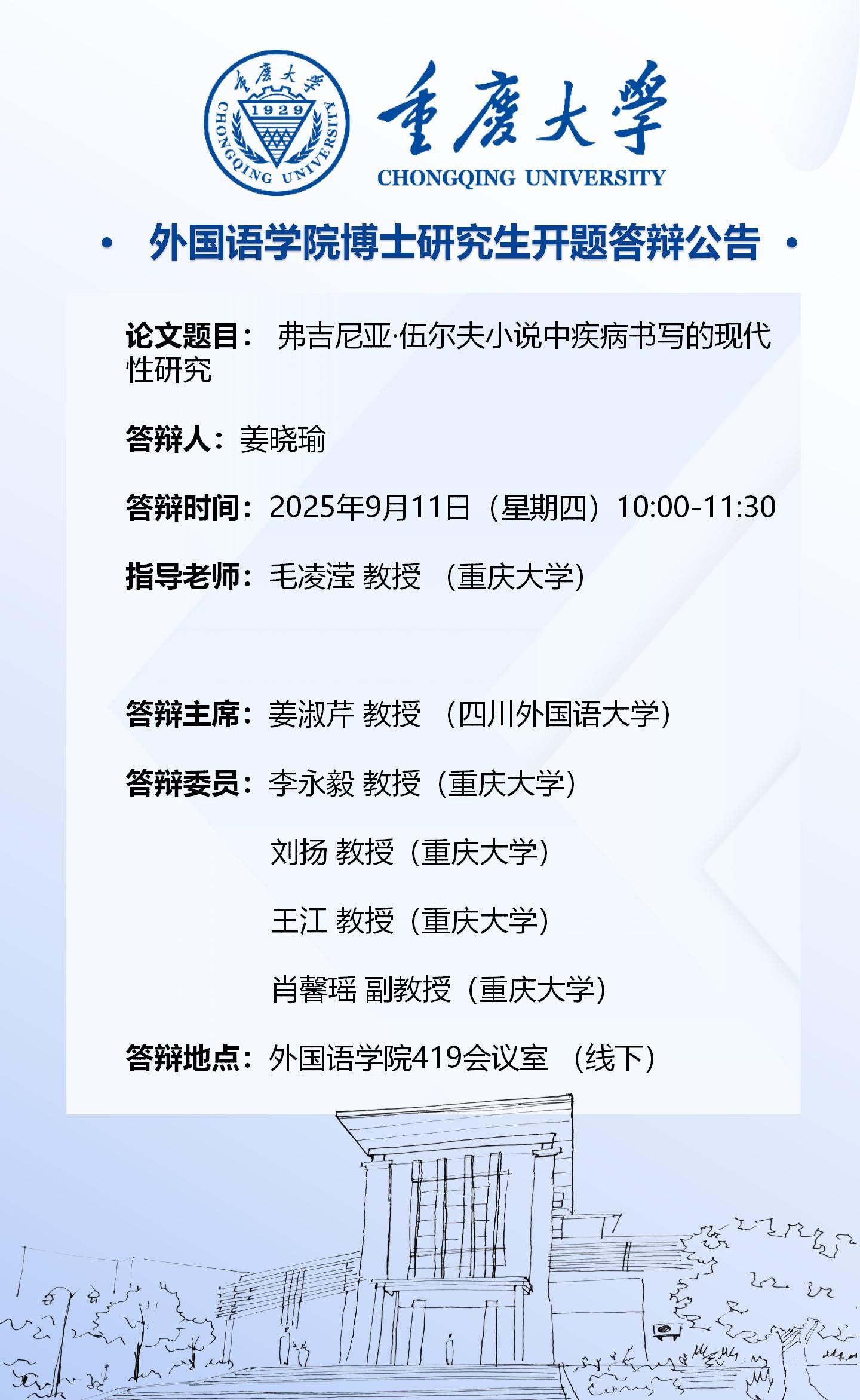 色情影片 2022级外国语言文学专业(文学方向)博士开题答辩安排-9月11日