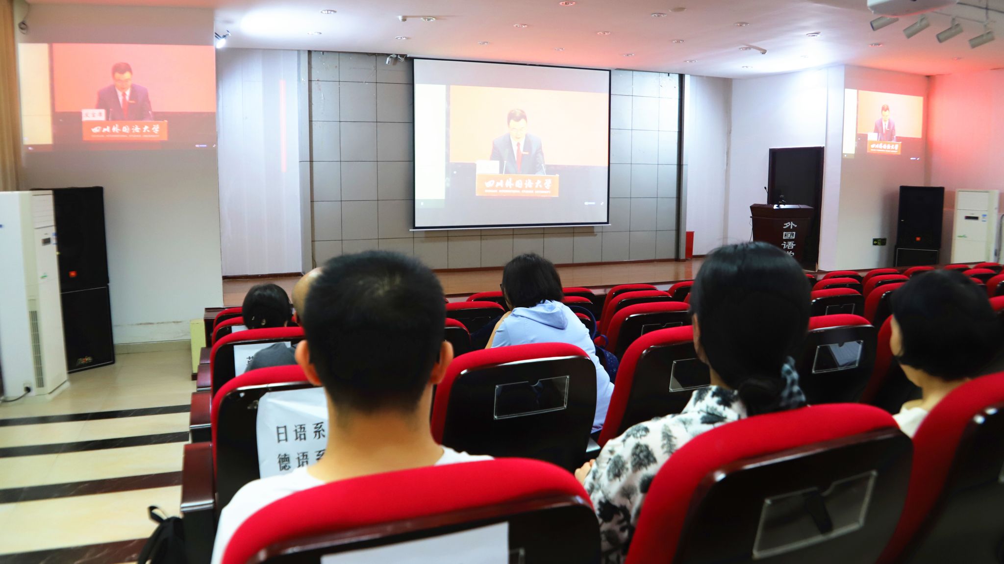 培训会上四川外国语大学校长董洪川,重庆市教育委员会高等教育处处长蒋云芳分别做了主题发言,总结了重庆市本科高校外语教育界在课程思政和外语课堂相结合领域的探索和成果,强调了落实“三进”教改的现实意义以及高等外语教育教学对服务国家对外话语体系建设和国际传播能力建设的重要意义和责任担当,并举行了“重庆市‘三进'专项教改项目暨‘理解当代中国’系列赛事发布”的启动仪式。