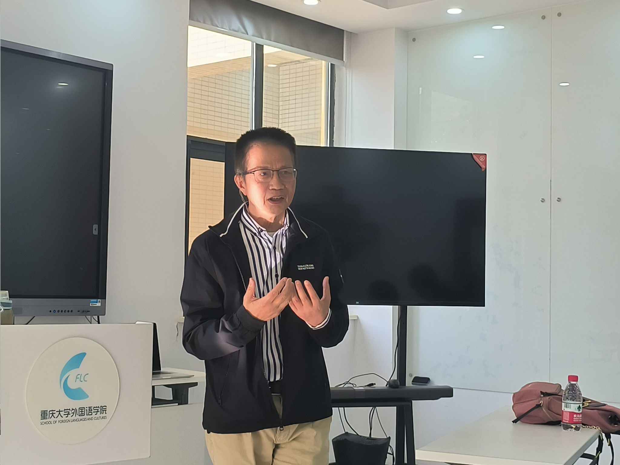 语言语音实验教学中心共同举办了AI赋能外语教学工作坊(第一期)。本次工作坊由余渭深教授和李小辉副教授主讲,由创新课程组主任郭丽静老师主持,吸引了近三十名教师踊跃参与,共同探讨AI技术在外语教学中的应用与前景。